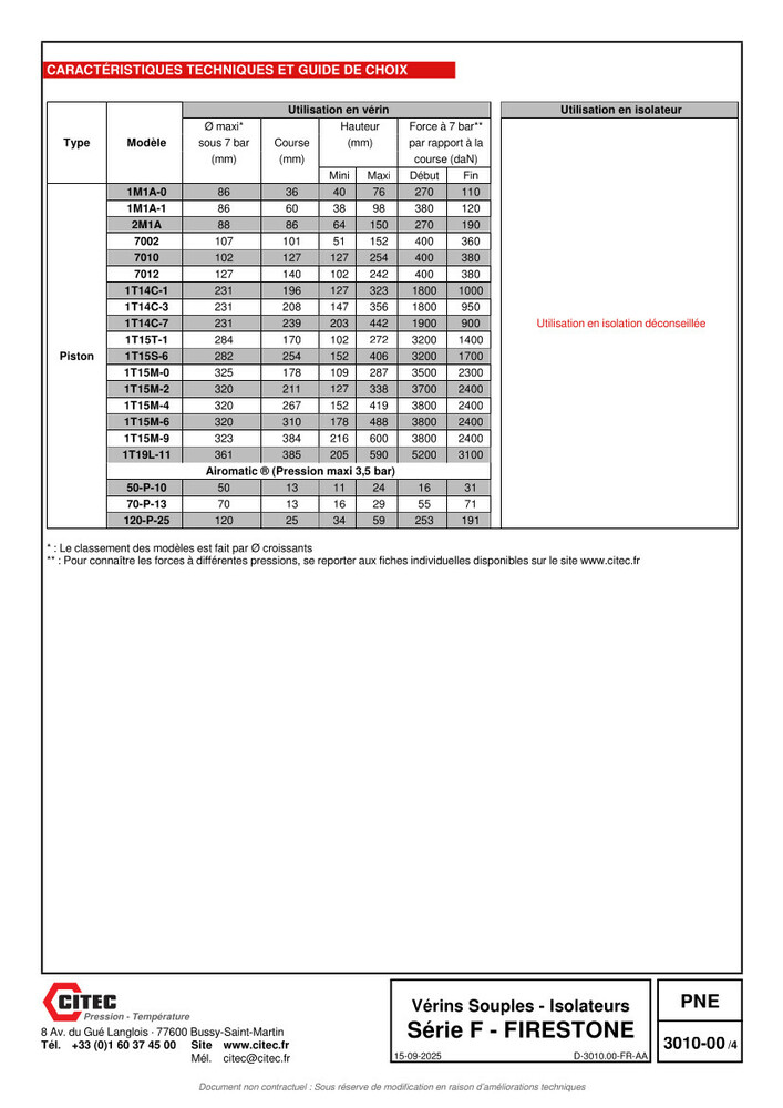 CARACTÉRISTIQUES TECHNIQUES ET GUIDE DE CHOIX