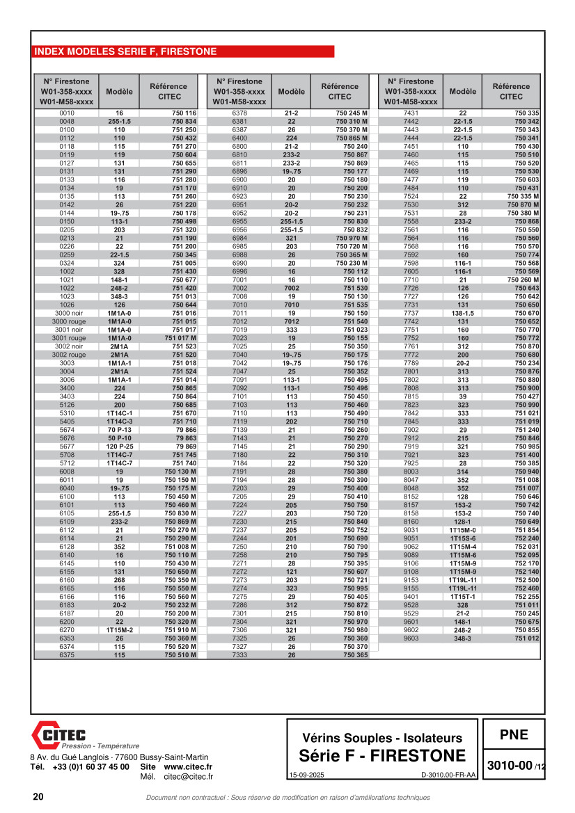 Permet de déterminer la référence CITEC en fonction du n° FIRESTONE ou du n° de modèle.