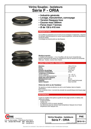 A partir du modèle choisi grâce au guide de choix page suivante, le tableau des références indique : - le type de fixation - l'entrée d'air - la référence CITEC en version standard - les références pour les versions haute température, flasques inox et haute température avec flasques inox.