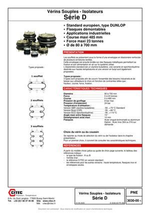• Standard européen, type DUNLOP • Flasques démontables • Applications industrielles • Course maxi 485 mm • Force maxi 23 tonnes • Ø de 80 à 700 mm