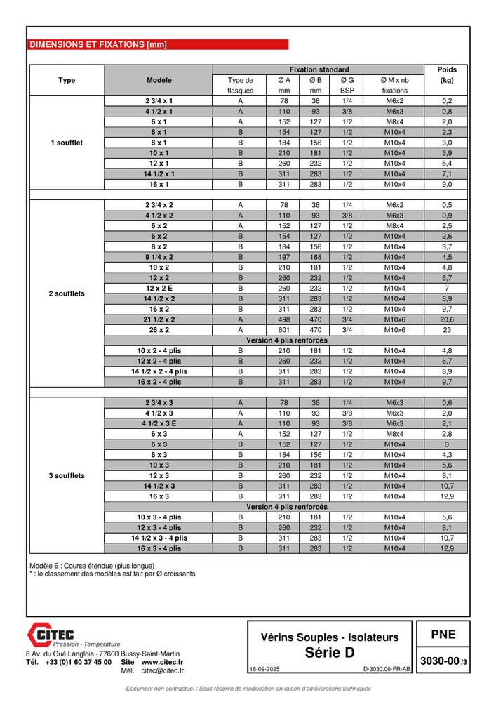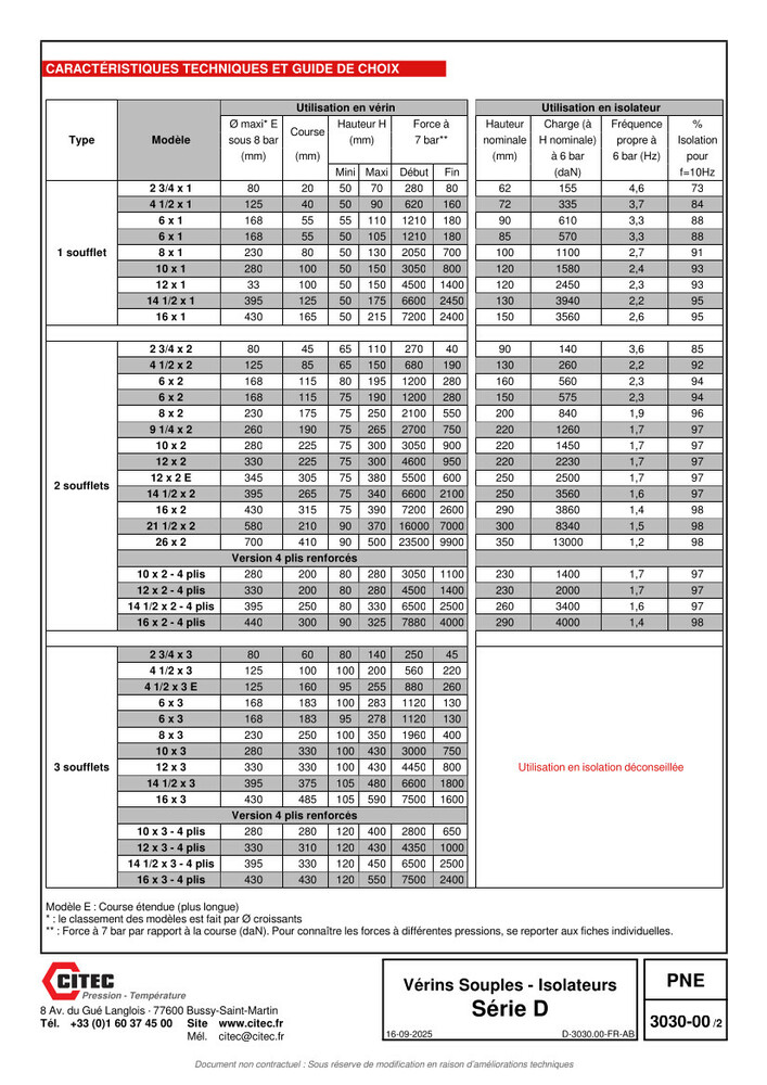 Tableau caractéristiques, guide de choix et dimensions