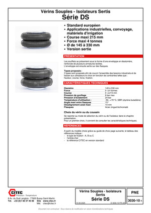 • Standard européen • Applications industrielles, convoyage, matériels d'irrigation • Course maxi 215 mm • Force maxi 4 tonnes • Ø de 145 à 330 mm • Version sertie