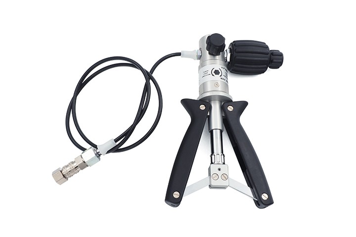 La pompe manuelle pneumatique K/P permet de générer des dépressions (vide) et des pressions jusqu'à 25 bar. La valve de réglage fin de la pression et la valve de purge intégrées à la pompe permet et le réglage rapide et précis de toute pression de calibration. La pompe hydraulique HTP1 permet de générer des pressions jusqu'à 700 bar. Le fluide de mise sous pression peut être de l'huile hydraulique ou de l'eau distillée. Son réservoir a une capacité de 100 cm³ (0,1 litre) environ (pompe livré sans huile). L'appareil de référence pour la mesure précise de la pression réelle se relie directement à la pompe par un raccord vissé.