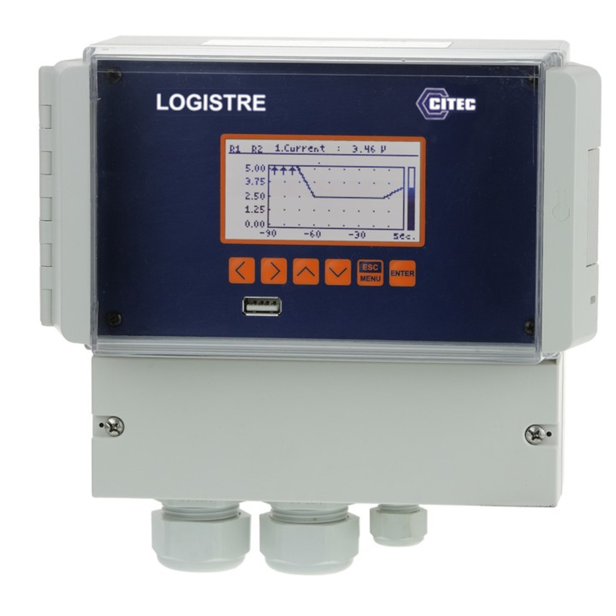 • Boîtier encastrable 96 x 96 mm • Boîtier mural IP 65 • Entrées universelles T°, TC ou RTD, signaux standards • 1 voie, 4 voies, ou 8 voies • Entrée digitale 24 V DC • Mémoire interne 8 MBits, (3 000 000 de données) • Scrutation réglable de 1s à 60 min • Afficheur à dalle graphique 2,9" Rétro éclairage : Blanc • Transfert de données - 2 ports USB (1 avant, 1 arrière) - Port PC (arrière) - Port RS 485 (arrière) • 2 Sorties relais, entièrement configurables • Gestion des données par logiciel (fourni)